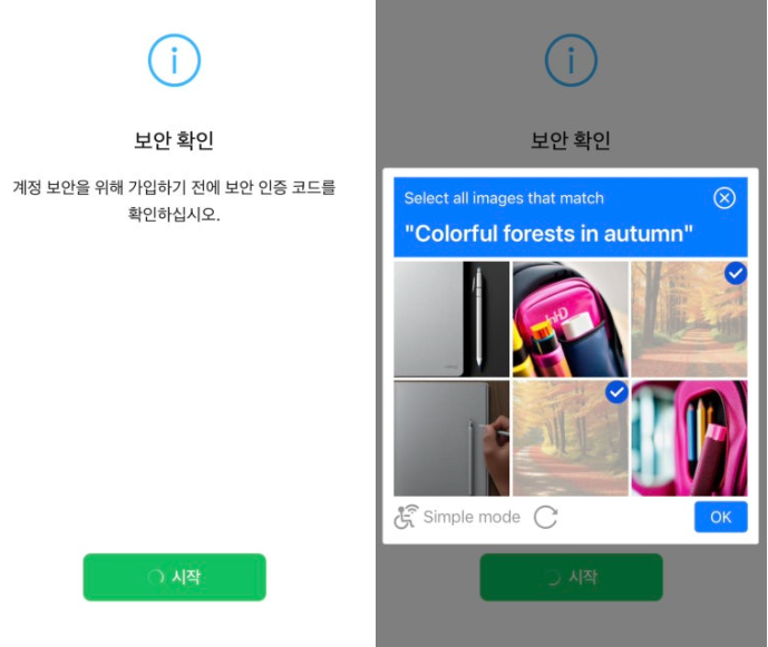 개인정보 보호정책 확인 후 다음으로 넘어가면 보안확인을 하는데