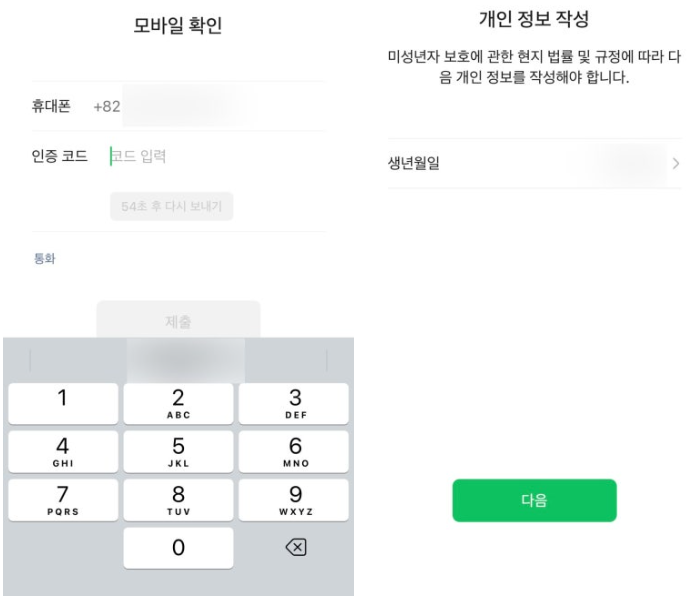 이름/지역/휴대폰/암호 순서대로 입력> 동의 및 계속